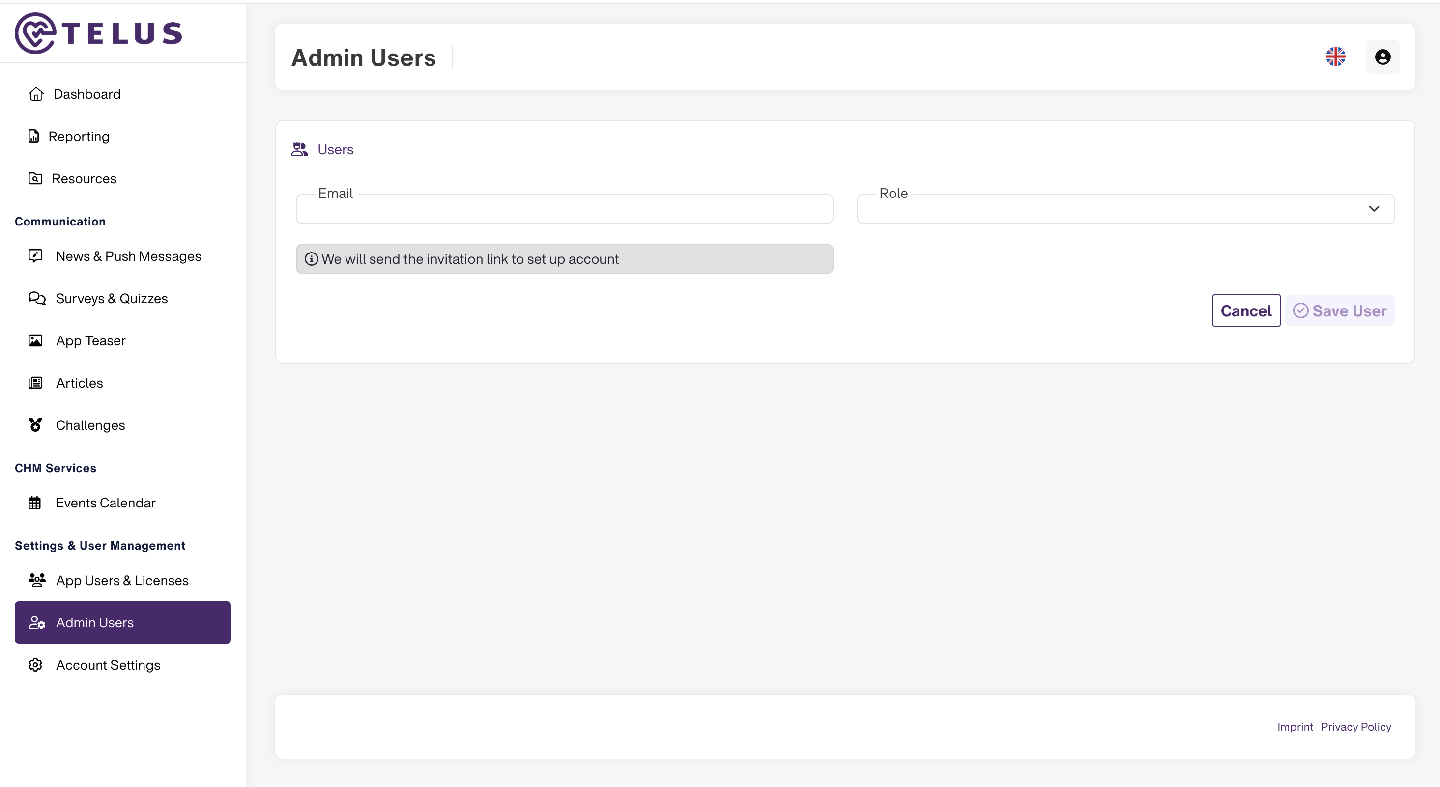 Es muss immer mindestens ein Admin im TELUS Health Engage Backoffice hinterlegt sein.